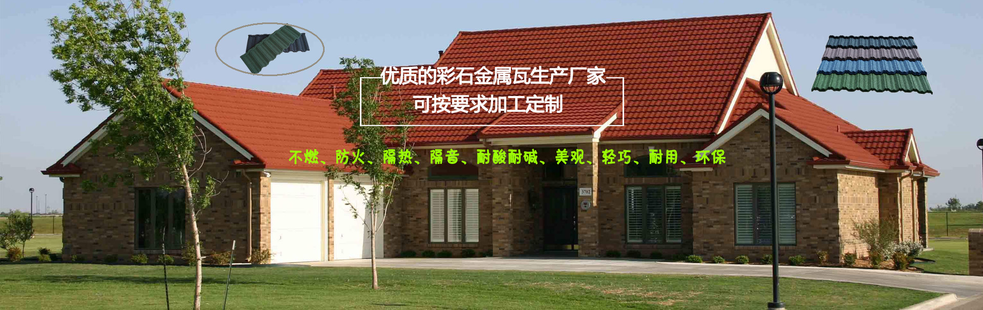 我們是一家彩石金屬瓦設(shè)備、設(shè)計(jì)、制造、銷售、安裝及服務(wù)于一體的公司 以過硬的產(chǎn)品質(zhì)量,優(yōu)惠的產(chǎn)品價格,令人滿意的銷售服務(wù),贏得您的支持與信賴。 彩石金屬瓦以防腐性能優(yōu)異的鍍鋁鋅鋼板為基板,以耐候性強(qiáng)的丙烯酸樹脂為黏合劑,以彩色天然沙礫為面層的新型屋面材料。